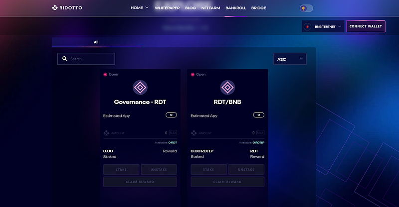 Below you can see a tease of Ridotto’s bridge and staking page: