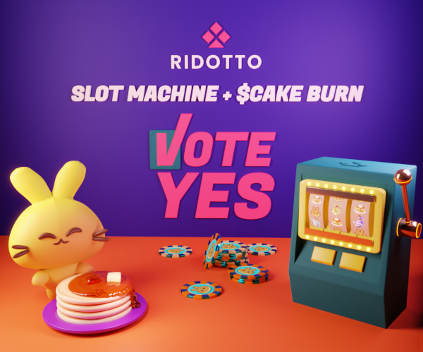 We rallied both Ridotto’s community and PancakeSwap’s to landslide a vote to affirm the will of creation of a Ridotto-made, $CAKE burning, PancakeSwap-themed slot machine. While we are yet to hear back from PancakeSwap’s team, as Ridotto’s first games launch, we will continue to pursue partnerships with them and others.