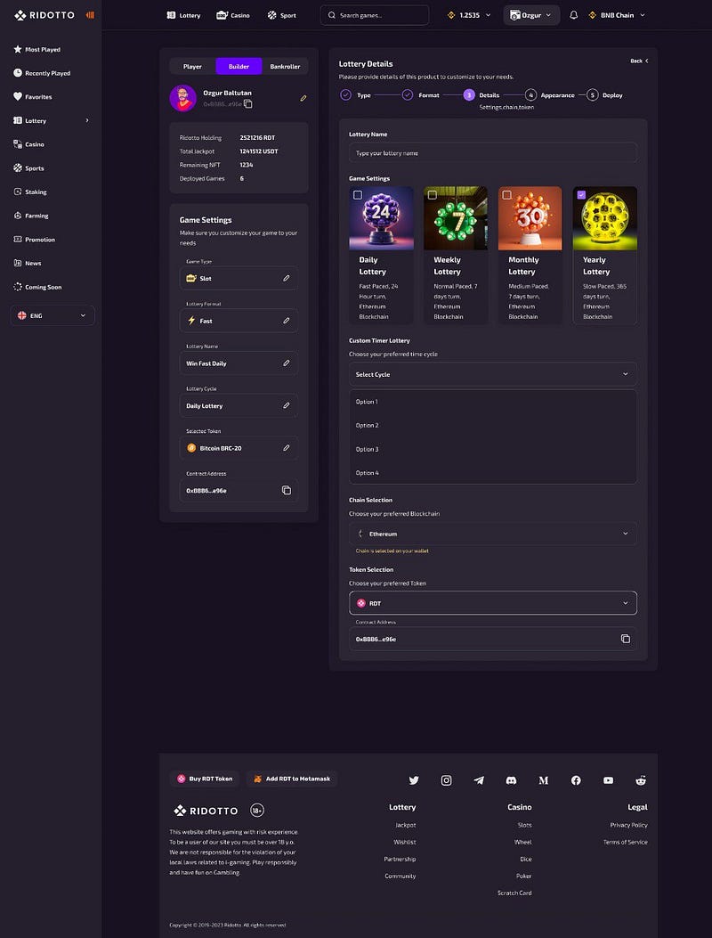 Build Platform Template: We defined the technical template for our Build Platform, which will extend lottery creation beyond partners to our community. In just 5 simple clicks, you can bring your unique casino game concept to life, without the need for any coding skills or technical expertise!